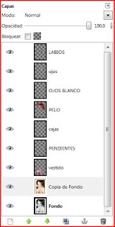 Para terminar activamos la capa que duplicamos al principio y cerramos el ojo a todas las demás. En COLORES-COLOREAR vamos dándole un color a piel a toda la capa y aceptamos. Ya podemos abrir todos los ojos , eliminar la primera capa fondo y ya tenemos nuestra belleza en color.