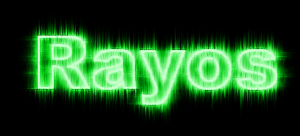 2-Con la herramienta texto y el color de frente en blanco escribimos la palabra Rayos.