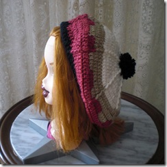 5ª vuelta- 3pa. 2pa. prendidos en el mismo punto (2veces) y un pa. en relieve prendido por detrás. Repetir 8 veces y cerrar con un punto raso.