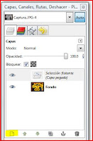 y veremos esta imagen en la vantana de CAPAS, es una selección flotante y para colocarla en una nueva capa solo tenemos que pinchar en el icono del folio en blanco que se encuentra en primer lugar debajo en la ventana capas y se creará una nueva capa con la foto en blanco y negro.